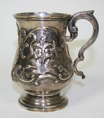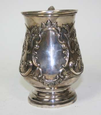 Hamilton & Co Calcutta, of baluster form with finely chased acanthus scroll and foliage., with leaf capped S scroll handle and stepped foot