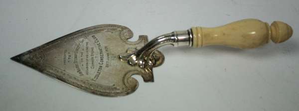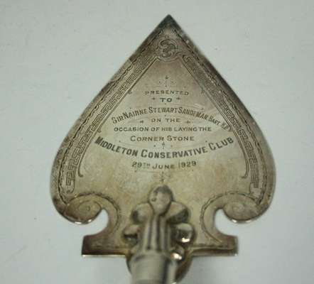 Noes: the blade engraved for the laying of the corner stone of the Middelton Conservative Club
