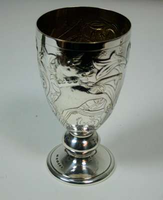 A pair of silver and parcel gilt commemorative goblets