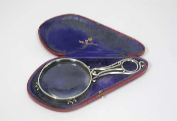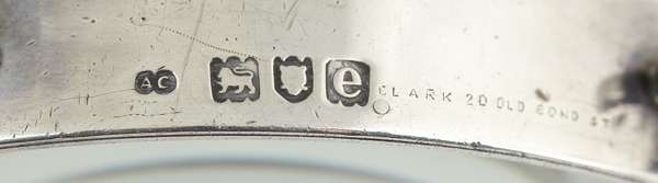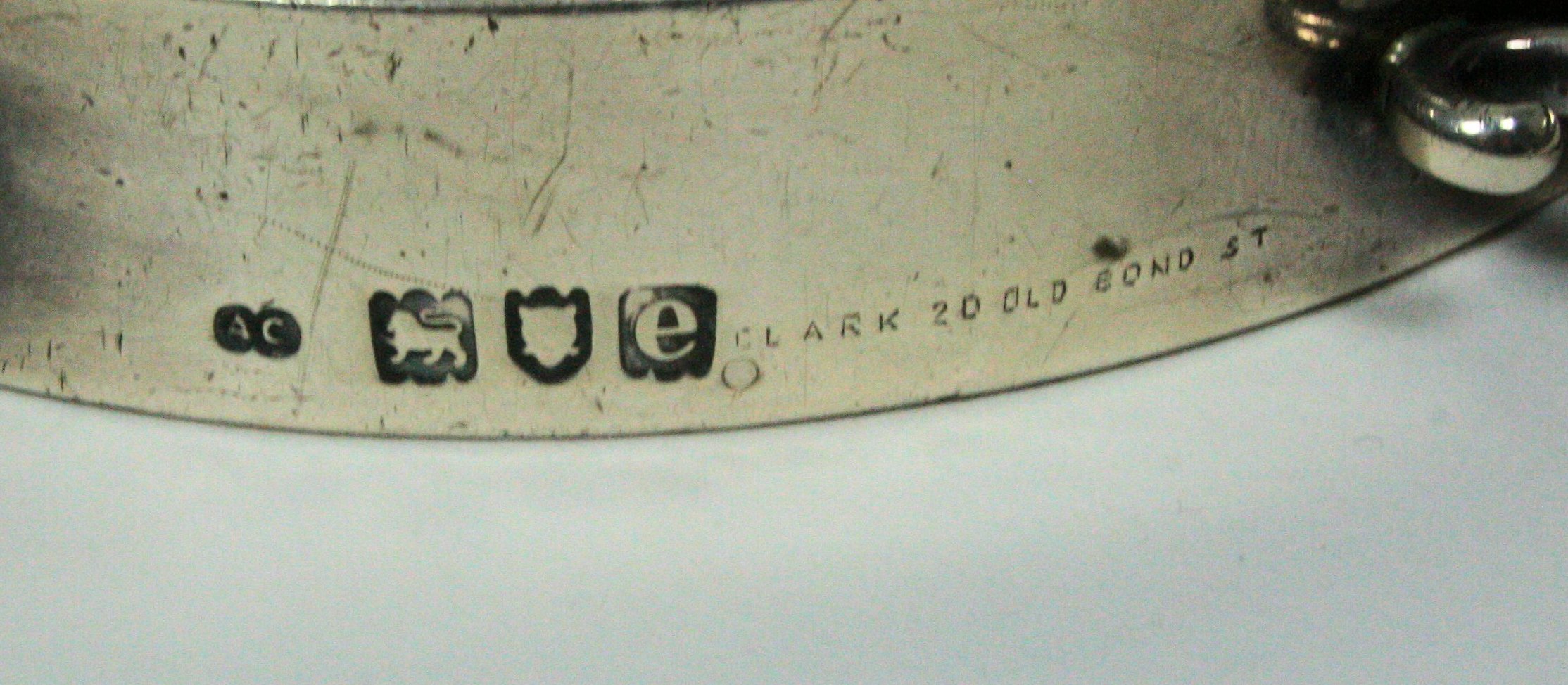 Alfred Clark, London 1900, of plain design with a scrolled open work handle, in a fitted case with tooled leather and gilt crest