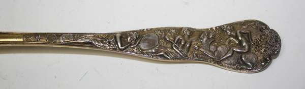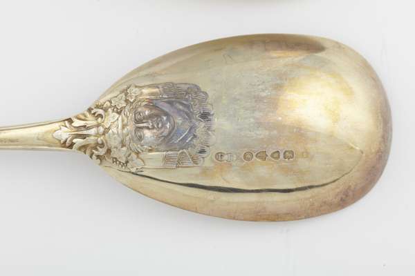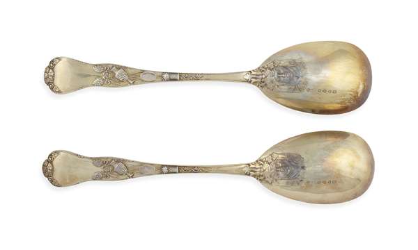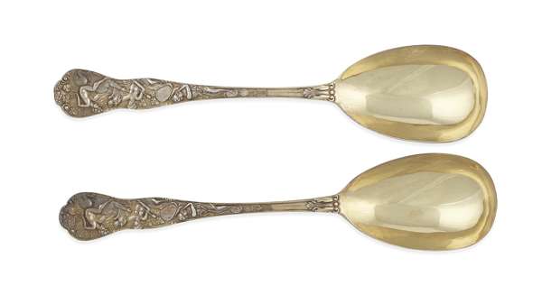 A pair of silver gilt Bacchanalian pattern serving spoons