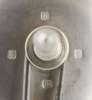 Edinburgh 1995, the circular drip plate with applied textured disks, raised on a single tapering knopped foot, supported by two stainless steel swept legs terminating in similar textured disks (2)