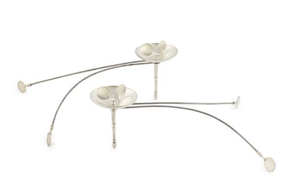 ROGER MILLAR - A pair of 'Living silver' candle holders