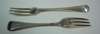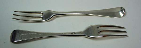 A matched set of six 18th century three pronged forks