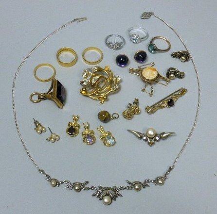 Collection of miscellaneous gold and gem set jewellery to include