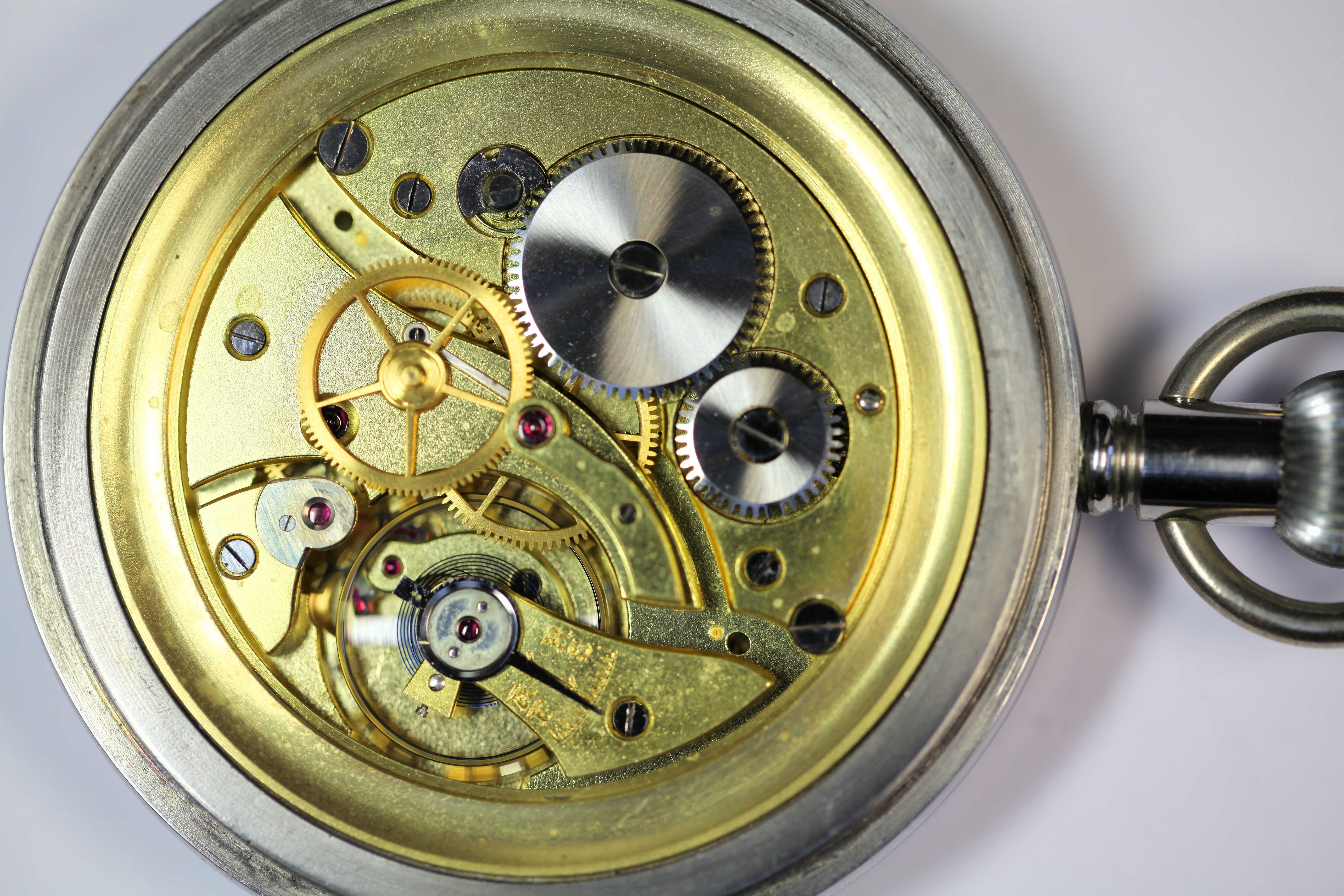 stainless steel case, keyless wind, movement probably by Helvetia, (General Watch Co.) circa 1947, white dial with Roman numerals, Arabic seconds, sweep second hand, plain polished case, the screw off back numbered 99946