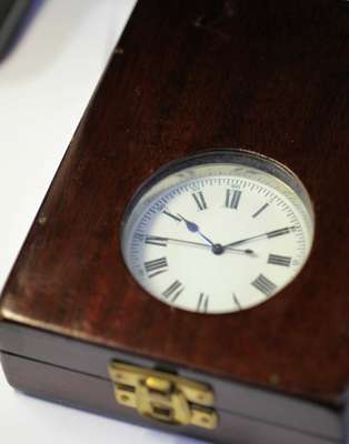 stainless steel case, keyless wind, movement probably by Helvetia, (General Watch Co.) circa 1947, white dial with Roman numerals, Arabic seconds, sweep second hand, plain polished case, the screw off back numbered 99855, in fitted mahogany case together with abstract test certificate from H M Chronometer depot with test results