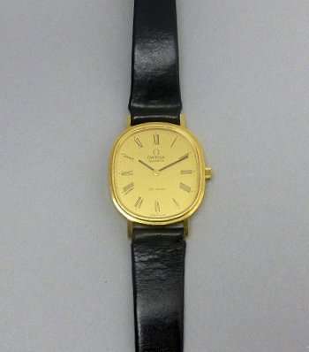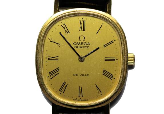 De Ville model, champagne dial, Roman numerals, quartz movement, leather strap