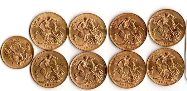 1927 SA, 1931, 1911, 1906, 1914, 1928 SA, 1911, 1912 M, Half sovereign 1912 (9)