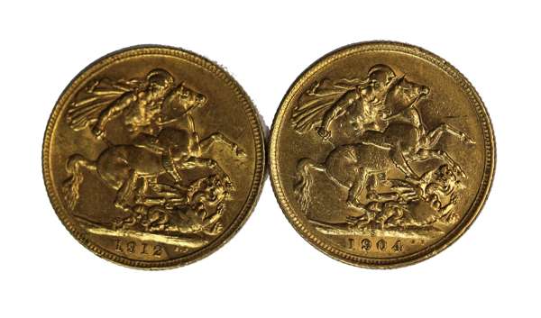 1912, 1904 S; together with a collection of miscellaneous coins, some silver, some crowns; a collection of seventeen various banknotes to include Treasury £1 and 10/- notes (5), Royal Bank of Scotland uniface £5 1959, RBS £1 1957, National Bank of Scotland £1 1952, rest minor foreign (qty)