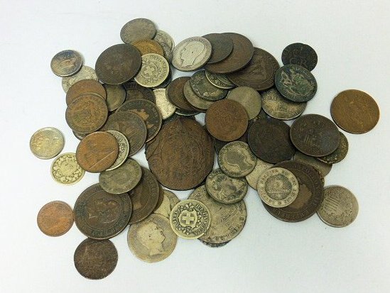 to include a French 1858 gold 5 Franc; a small group of world silver coinage, a manilla and a large group of world bronze coinage (qty)