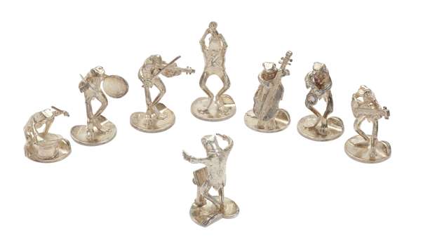 Thomas Charles Jarvis, London 1991, modelled as an eight piece novelty frog band, including drummer, violinist, conductor and others (8)