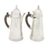 London 1911, of simple flared cylindrical form with reeded rim and foot, the domed hinged cover with scroll thumbpiece and simple C scroll wooden handles (2)