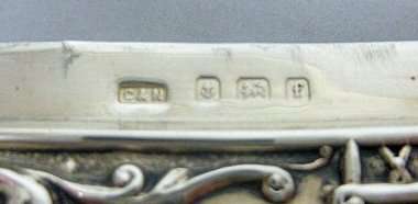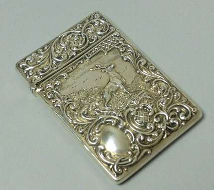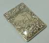 Crisford & Norris, Birmingham 1905, of rectangular outline with hinged lid, decorated in relief an image of a stag in woodlands with scrolling and floral detail, with vacant cartouche