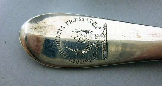 J Seatoun, Edinburgh 1717, Assay Master Edward Penman, of Hanoverian pattern with engraved crest to obverse of terminal (2)