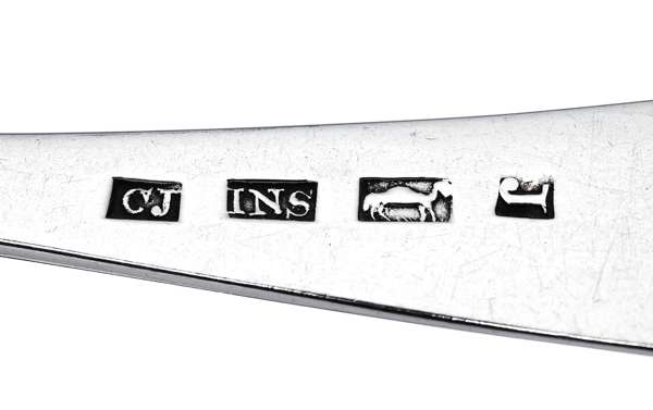 Charles Jamieson, marked CJ, INS, camel, J, of Old English pattern with script initials 'H / MG' to terminal (6)