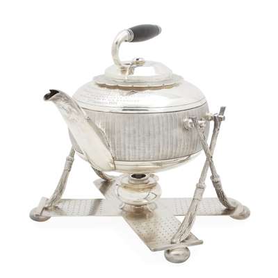 A late Victorian presentation curling stone spirit kettle