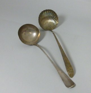 Charles Eley, London 1834, of plain form; together with another soup ladle with engraved detail and shell bowl (2)