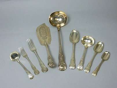 predominantly Edinburgh circa 1830, to include various tablespoons, table forks, dessert spoons, soup ladle and fish server etc (qty)