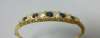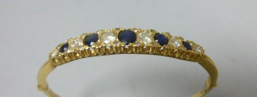 of hinged design, set with six graduated round cut diamonds spaced between five graduated round cut sapphires, with small eight cut diamond accents