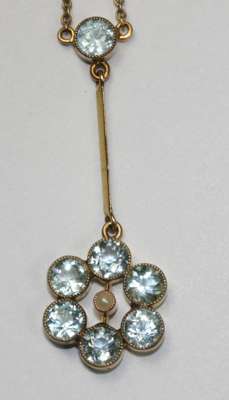 An early 20th century aquamarine and pearl pendant