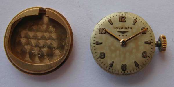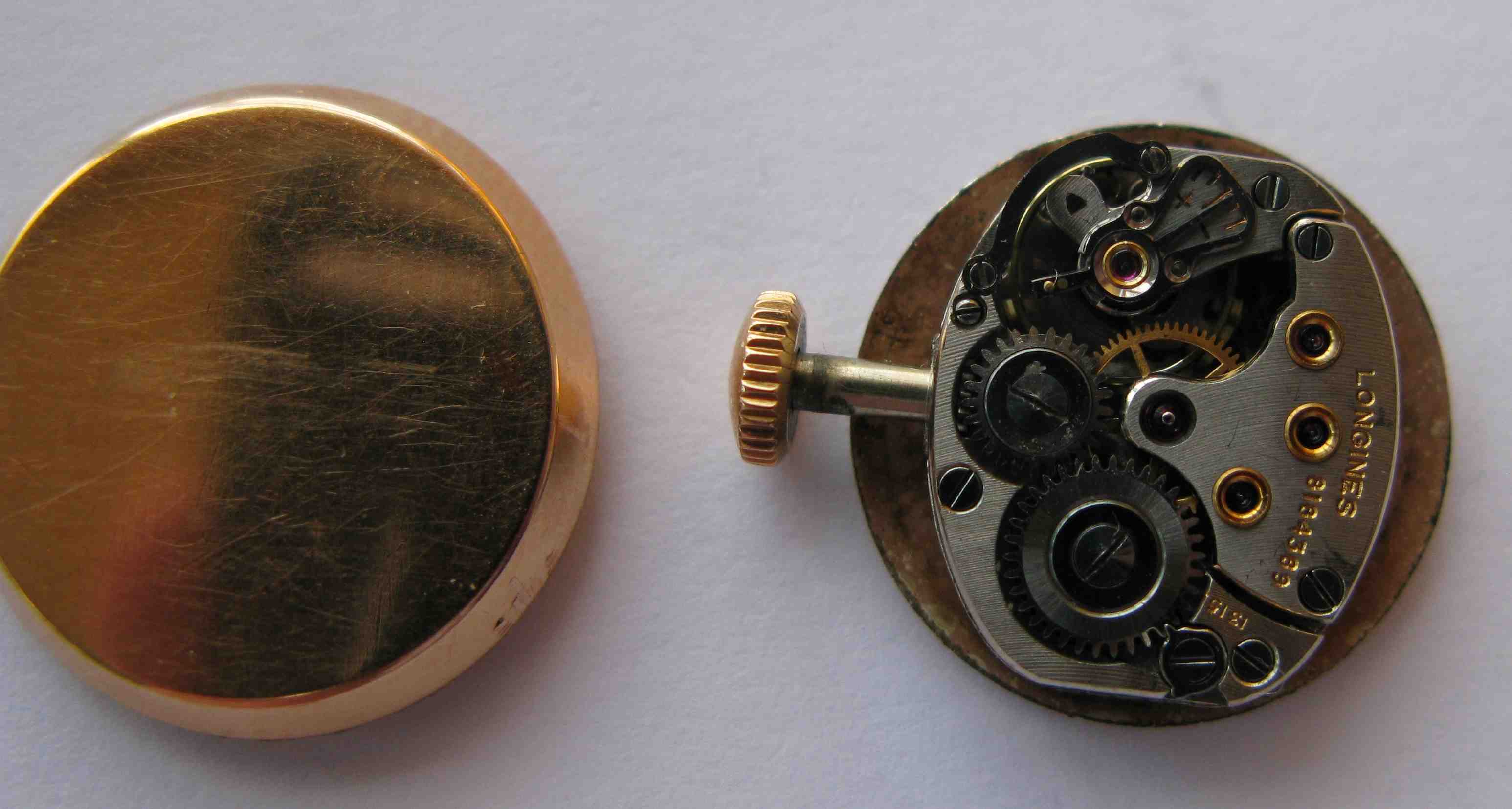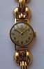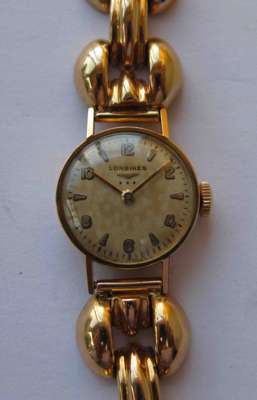 18ct gold watch head, the champagne dial inscribed, baton and Arabic numerals, plain hands, the 40s/50s style pink yellow metal ribbed and domed bracelet apparently unmarked