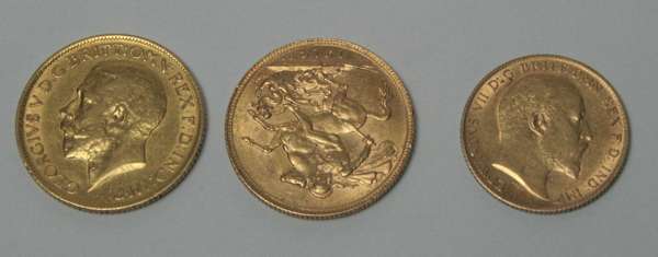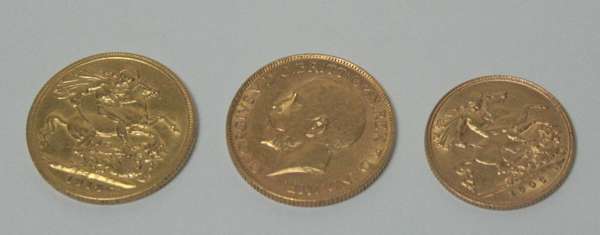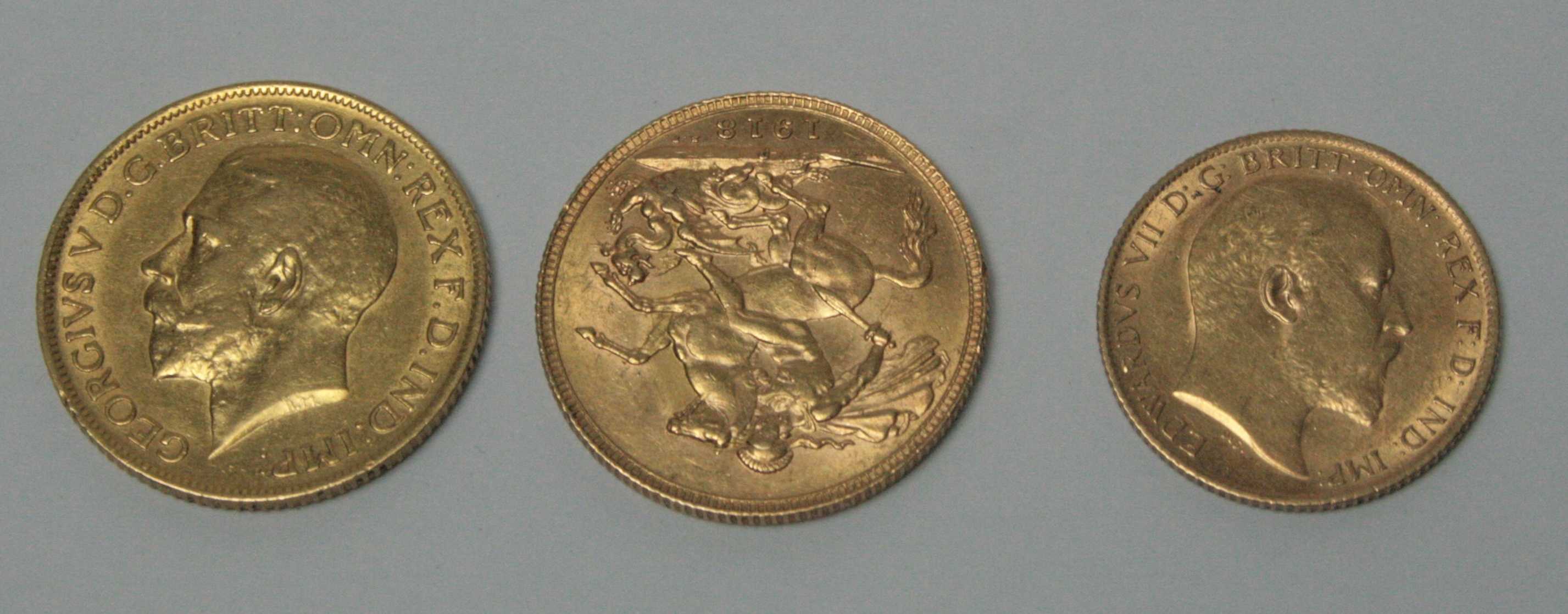 a 1914 sovereign, 1918 sovereign and a 1906 half sovereign (3)
