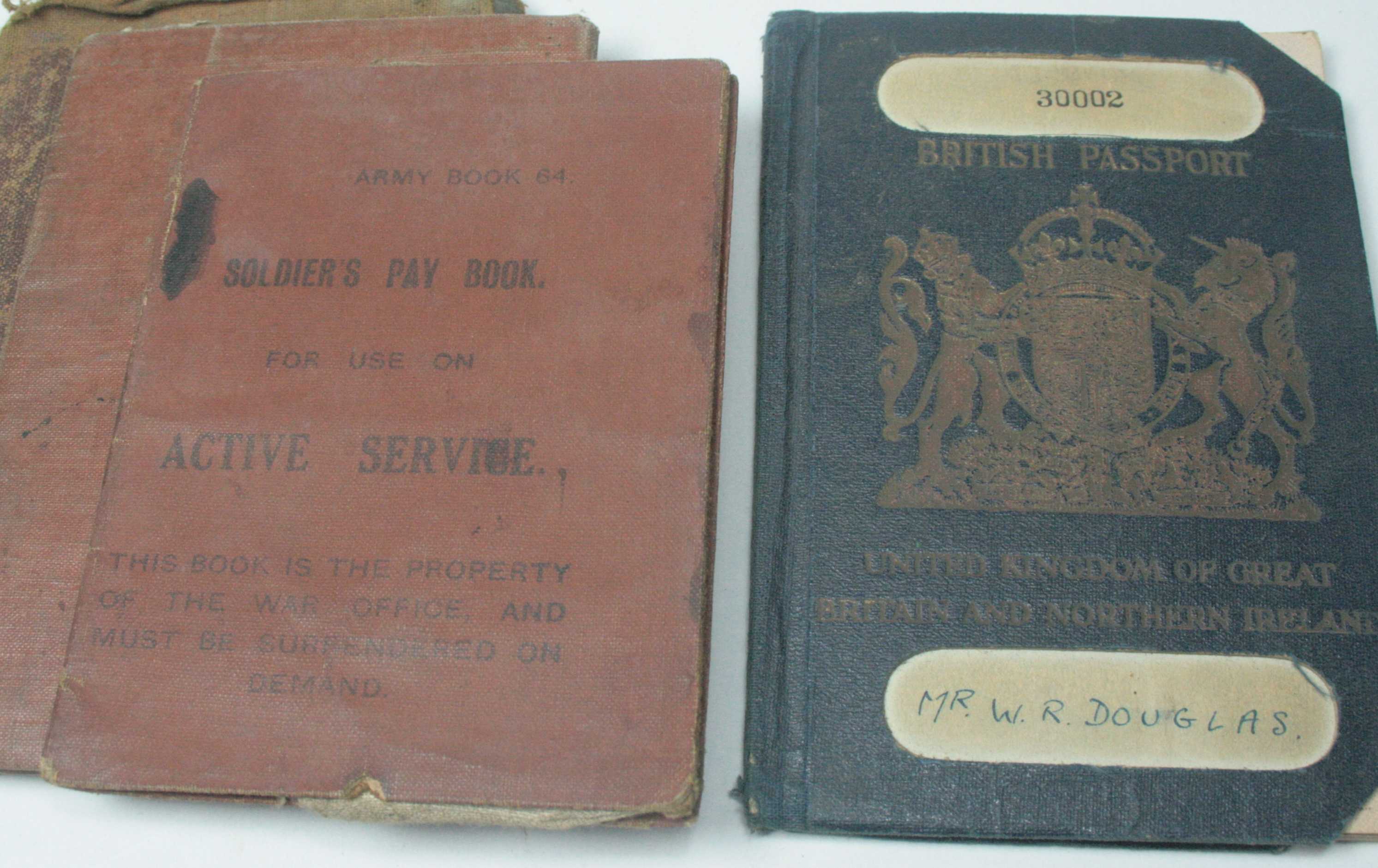 awarded to 2592 SJT. W. R. DOUGLAS. 9/H.L.I.-TF comprising Military Medal, MBE (cased); together with matching miniatures also including 1914-15 trio and large amount of personal and official paperwork to include letters, passports, paybooks etc, all contained in an official George VI leather brief case (qty)