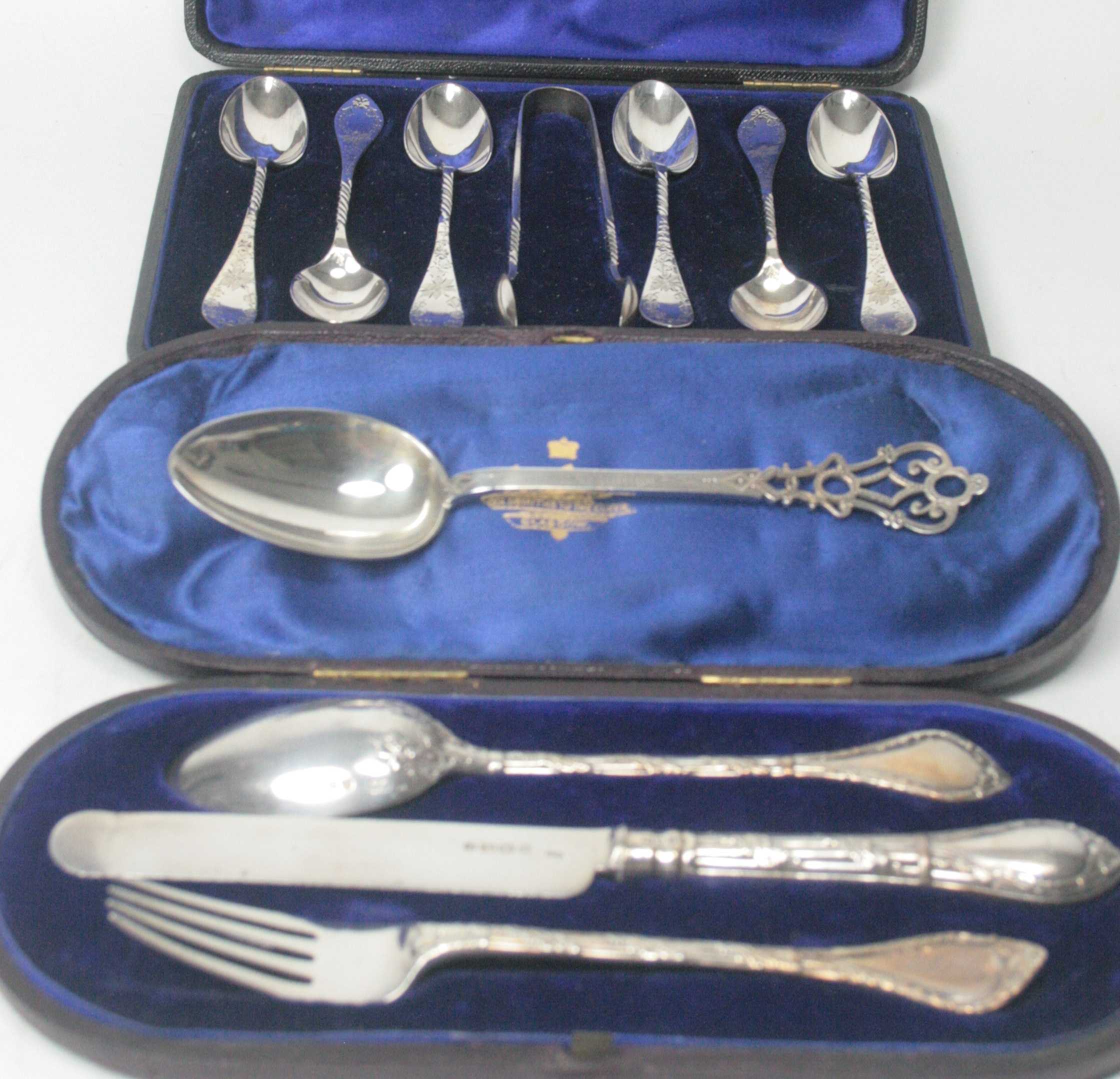 various dates and makers, to include desert spoons, teaspoon, two cased christening sets etc (qty)