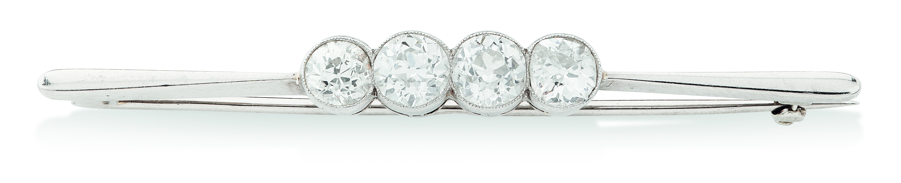 A four stone diamond set bar brooch