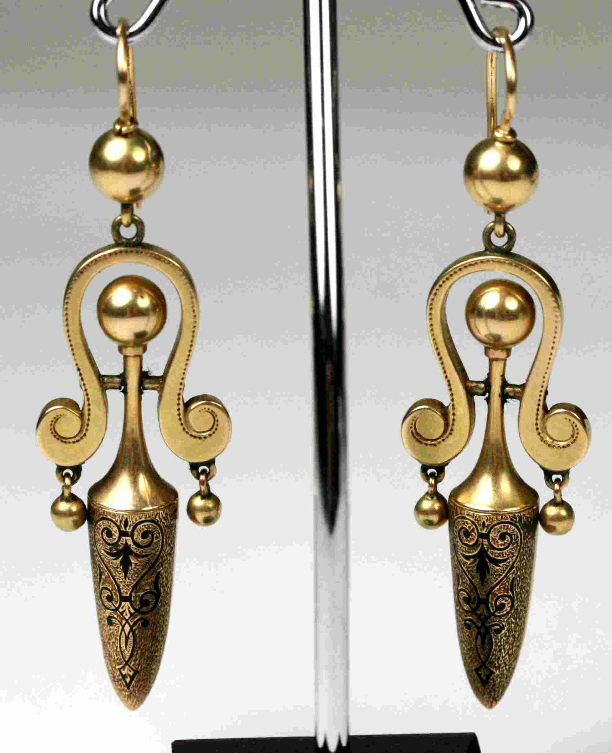 A pair of mid-Victorian Etruscan style pendant earrings
