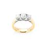 claw set in white metal with three graduated round cut diamonds, the gallery with pierced heart detail, to a thick yellow metal shank set with a small round cut diamond to one side, stamped 18KT AMORO