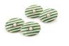 to include a pair of white and green striped enamel cufflinks, the oval terminals each set with a small half pearl, stamped 18 to reverse; a pair of yellow metal cufflinks, the oval terminals with blue enamel detail to edge, stamped 15 to reverse; a pair of unmarked yellow metal cufflinks, the circular terminals with mother of pearl and blue enamel detail (3)