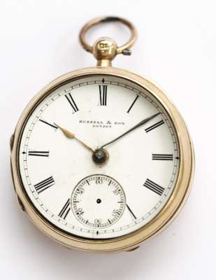 Russell & Son, the enamel dial with Roman numerals and subsidiary seconds dial, glass lacking