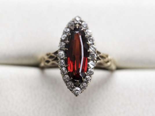 Ring size: N/O, estimated total gem weights: garnet: 2.73cts, diamonds: 0.80cts
