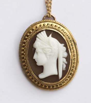 a hardstone pendant and chain, an opal ring, six various gem set and other brooches