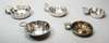 mainly French style, traditional decoration, one with embossed grape border, plain and decorated thumbpieces, one with snake handle, one plated the others with various marks