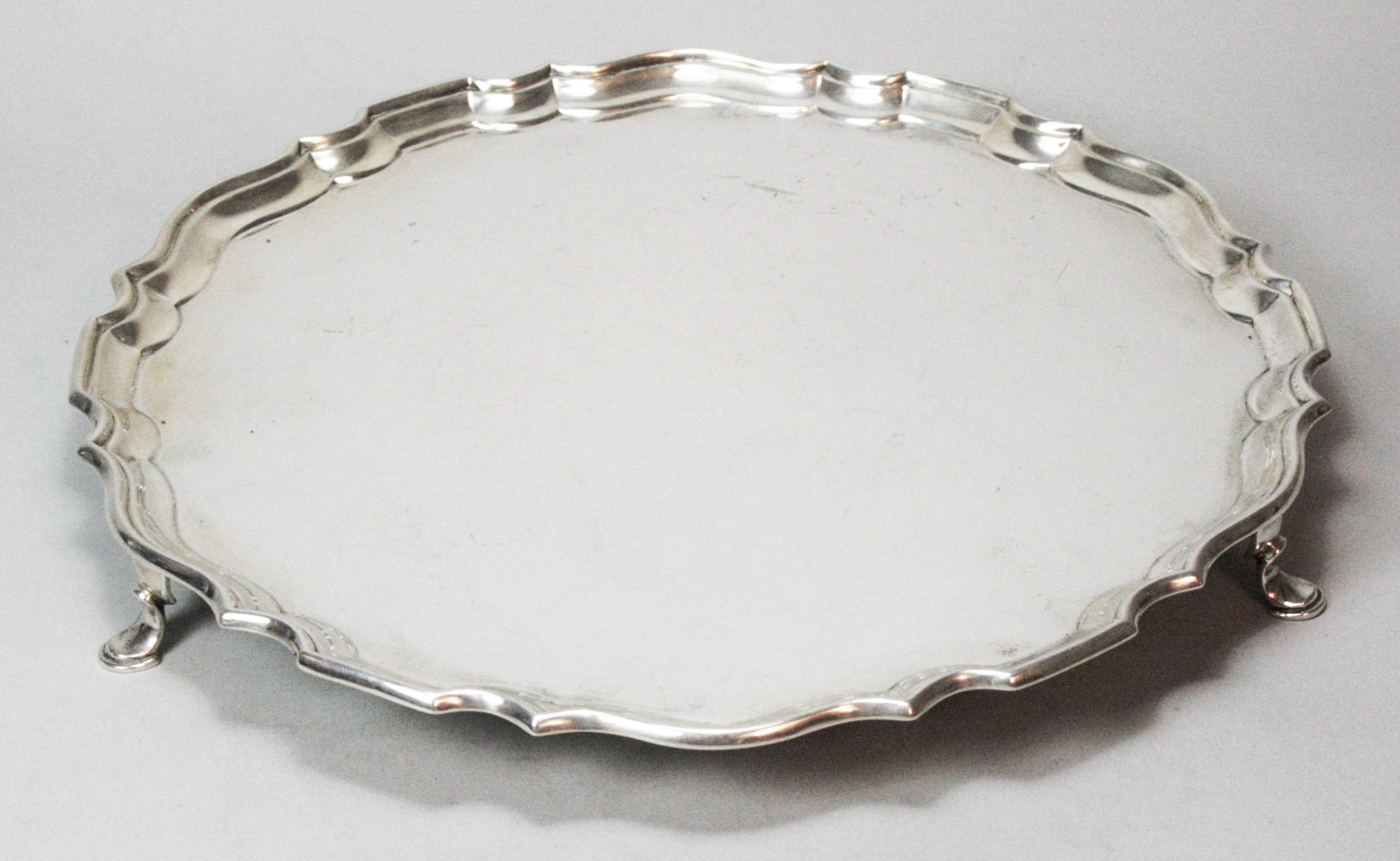 Sheffield 1926, of shaped circular outline with scalloped rim and raised on three hoof feet
