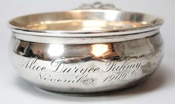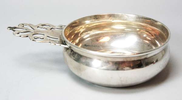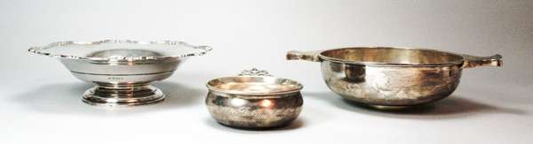 Sheffield 1924, of conventional form with engraved lugs and central boss, on a simple collar foot; together with a modern American porringer and a fruit bowl (3)