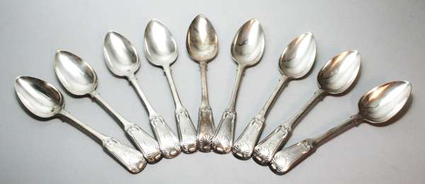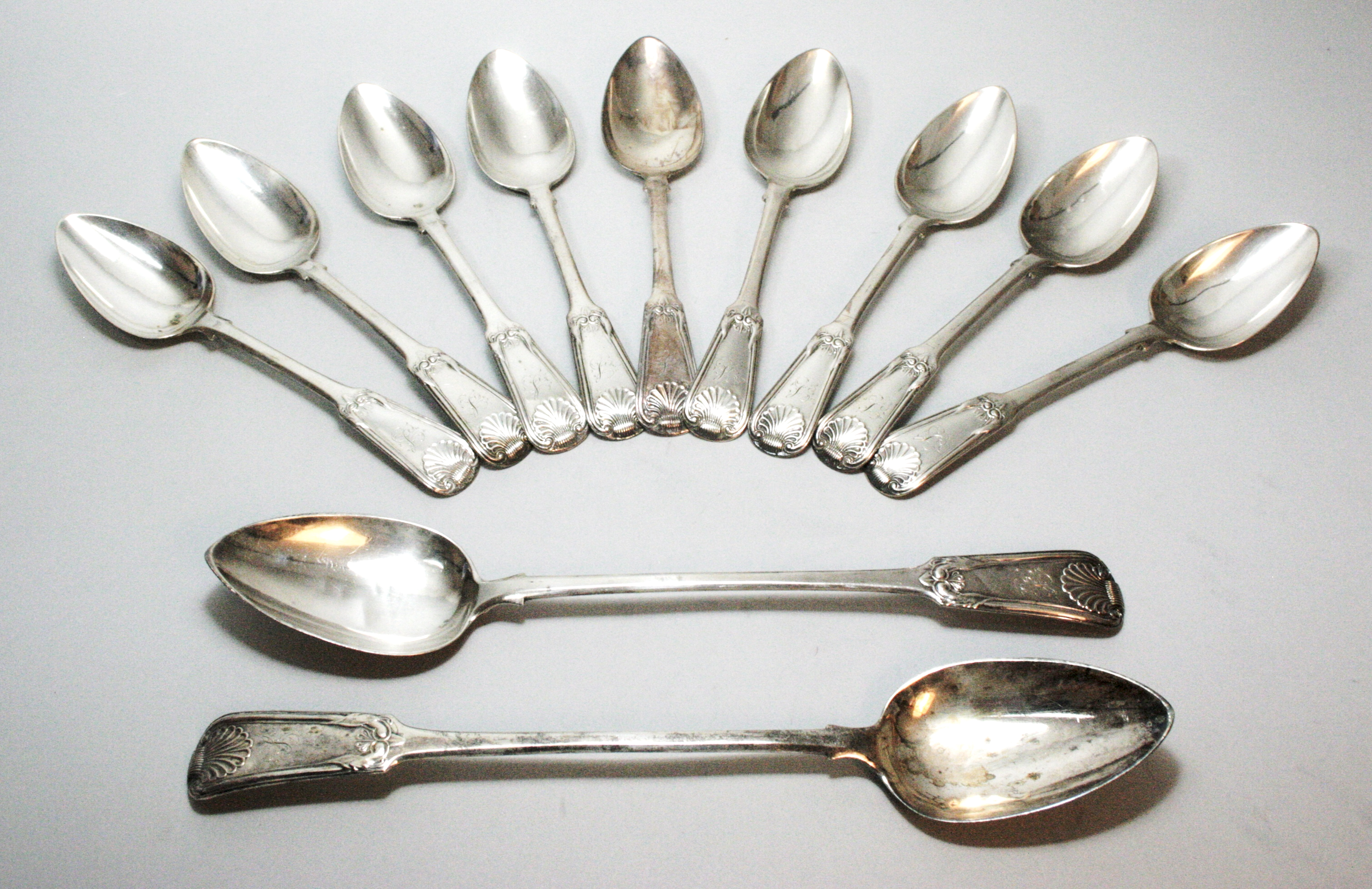 Mitchell & Russel Edinburgh 1817, of Fiddle and Shell variant, comprising two serving spoons and tablespoons (11)