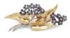 modelled as a spray of flowers, different textures to the leaves and set circular cut stones
