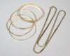 to include a yellow metal box link chain, stamped 375; a collection of four yellow metal bangles with bright cut detail, stamped 875 (5)