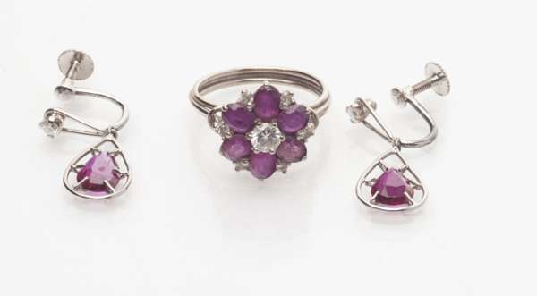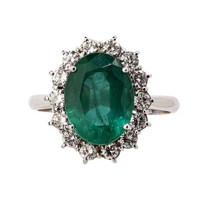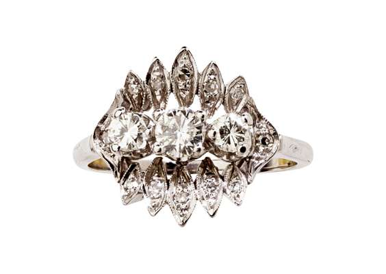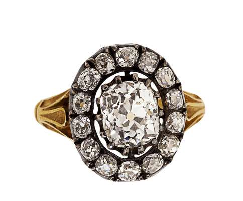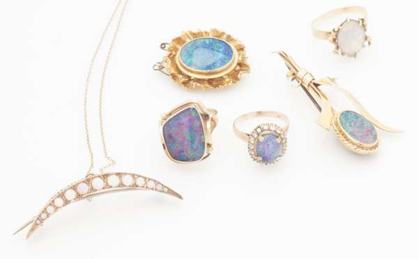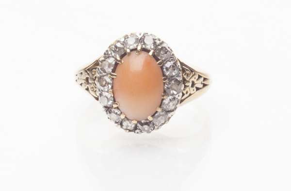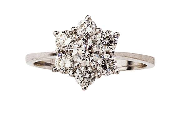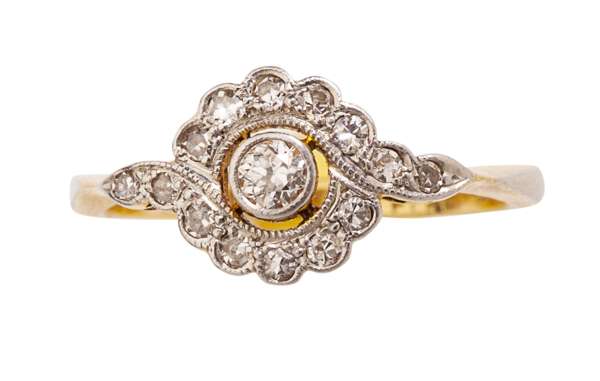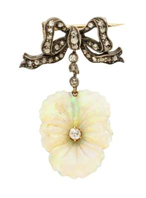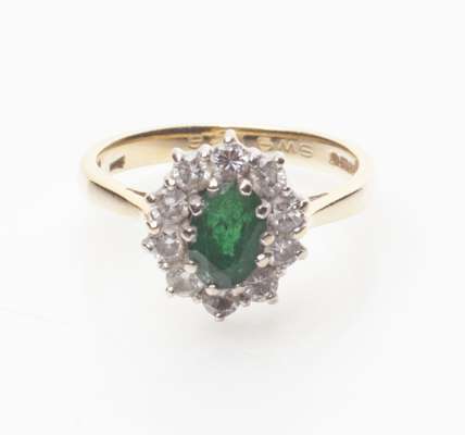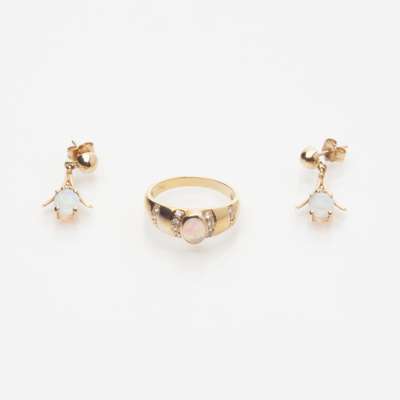 A 1970's 18ct gold mounted opal and diamond set cluster ring