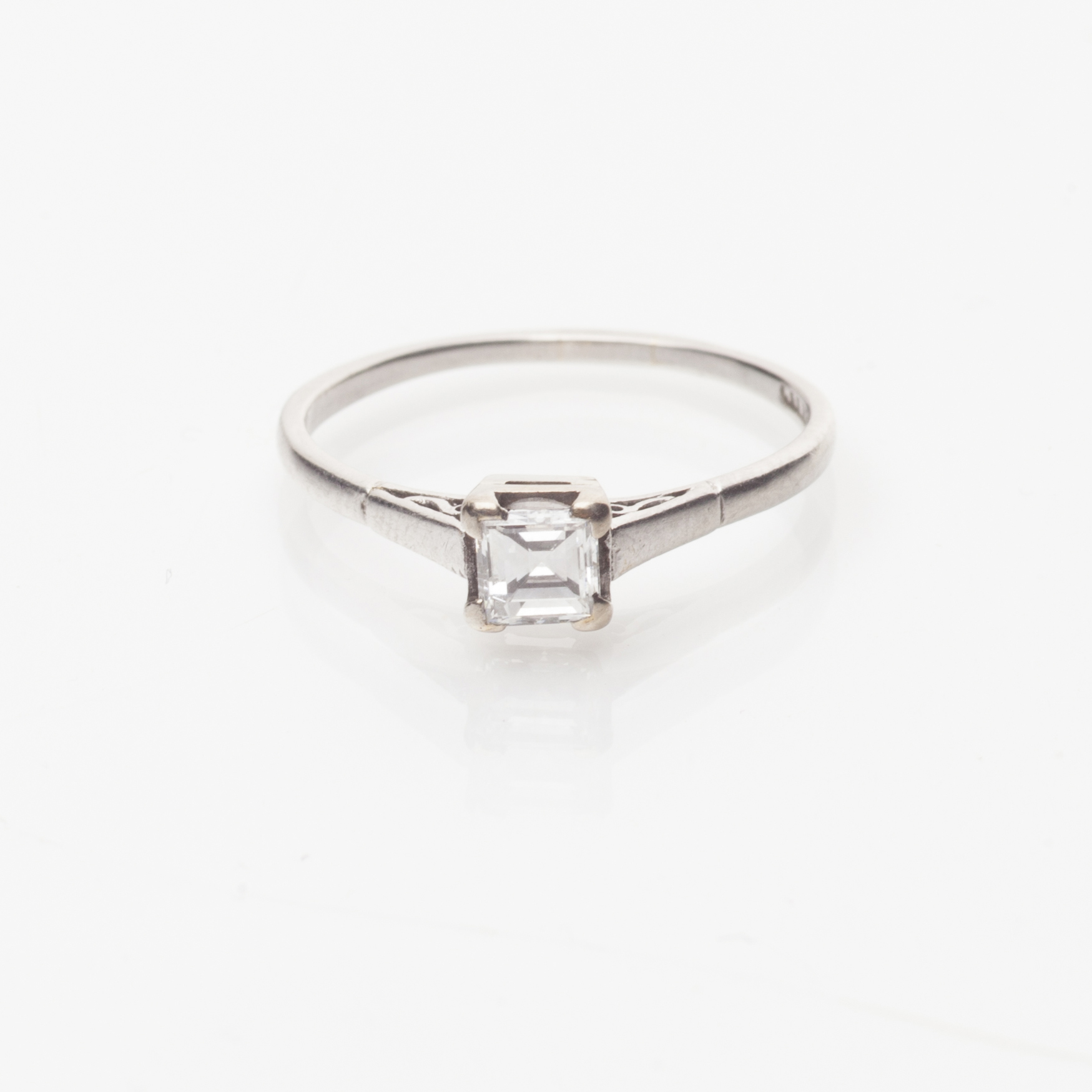 the princess cut diamond, corner claw set in a plain platinum mount