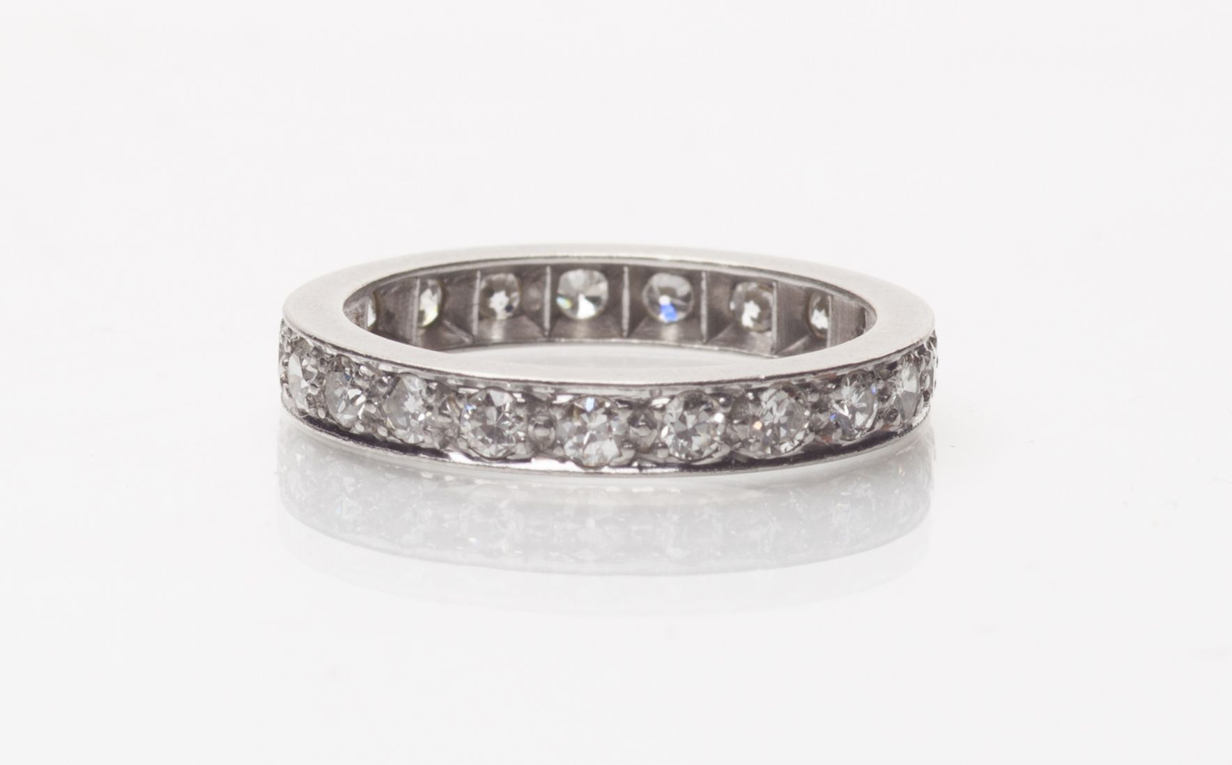 set throughout in white metal with small round cut diamonds, marked PLAT
