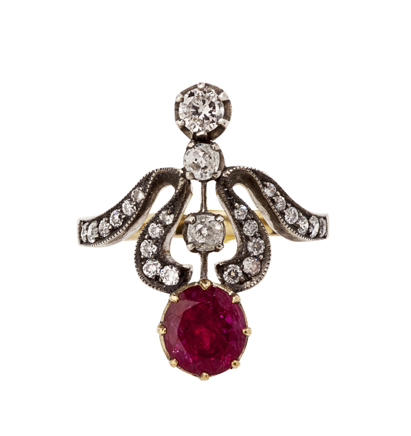 A Belle Epoque ruby and diamond set ring