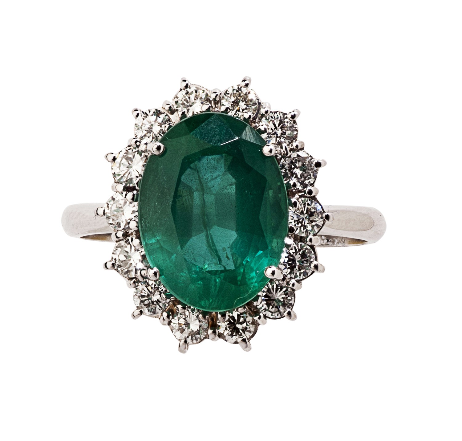 An emerald and diamond cluster ring