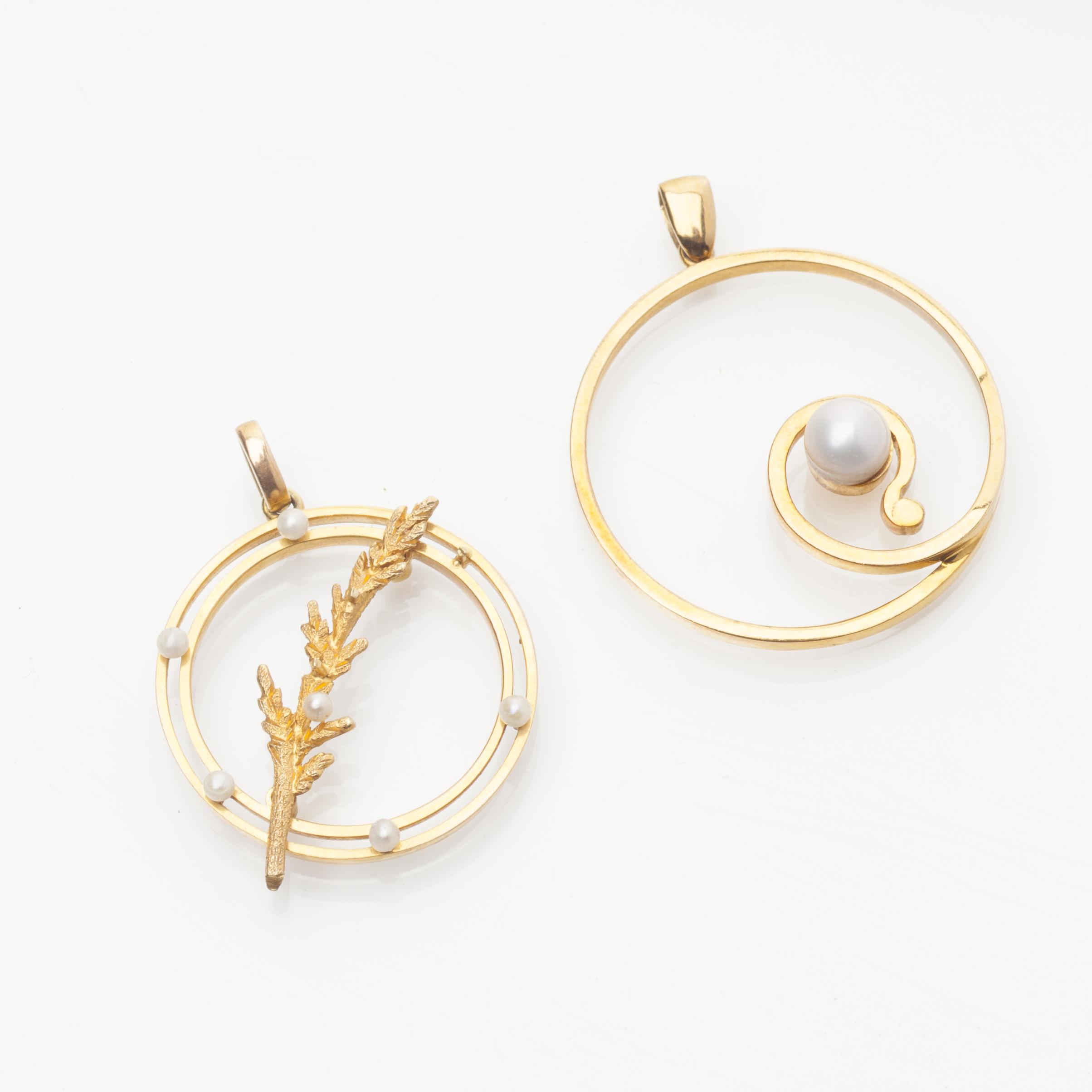 Two pearl set pendants