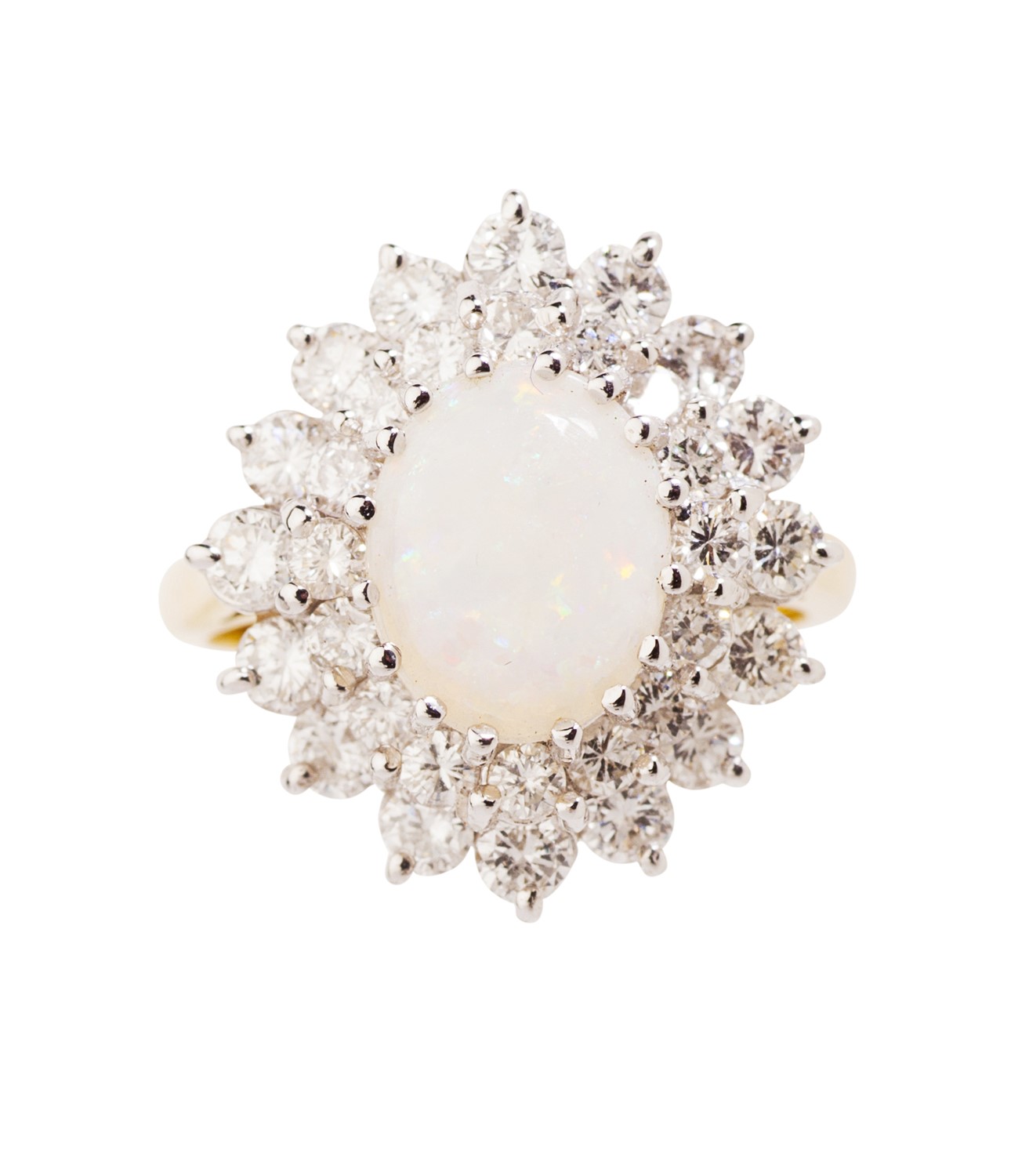 Ring size: M, estimated weights: opal 1.60cts, diamonds 1.92cts total