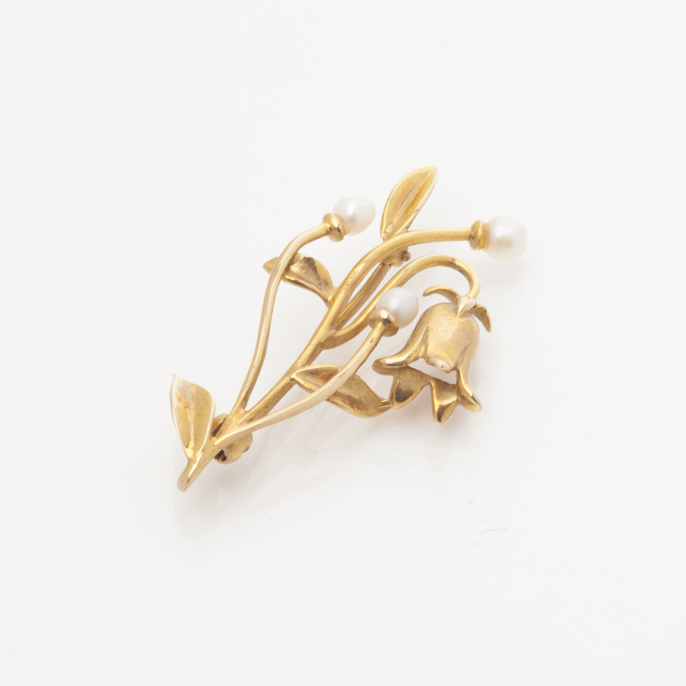 modelled as a small cluster of bluebells in 9ct gold, set with three small Scottish freshwater pearls